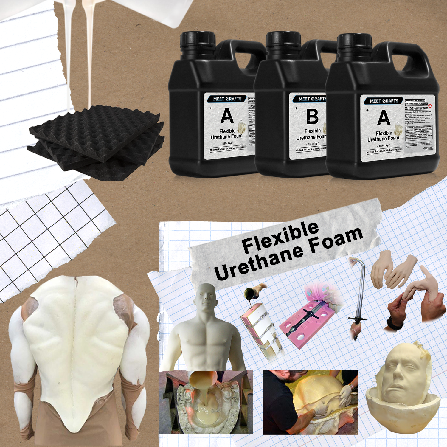 Meetscrafts 1kg Liquid Urethane Foam is a versatile, non-toxic, water-resistant foam designed for a variety of applications, including mold making, prop making, prototyping, soundproofing, and seat/cushion casting. Available in two versions—Flexible and Rigid—this foam provides superior sound dampening properties, making it ideal for noise-sensitive environments such as recording studios and home theaters. Both versions are easy to mix, pour, and mold, delivering high-quality, durable results for both creative and professional projects.